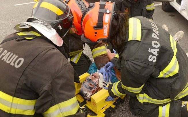 O acidente simulado, que envolveu dez ‘vítimas’, foi realizado no estacionamento da Secretaria de Finanças, com o apoio do Departamento de Trânsito, da Guarda Civil Municipal e do Corpo de Bombeiros.