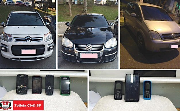 Além dos detidos foram apreendidos 13 celulares, três carros e um notebook.