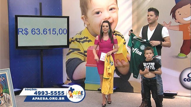 A ação ‘Mais Apae’ promovida pela TV + arrecadou R$ 65.500 no domingo (20), – dia da jornada televisiva com diversos artistas no palco da emissora -, o valor 38% superior ao conquistado na primeira edição no ano passado quando o montante atingiu a marca de R$ 47.500. O valor será repassado à Associação de Pais e Amigos dos Excepcionais da cidade de Santo André.