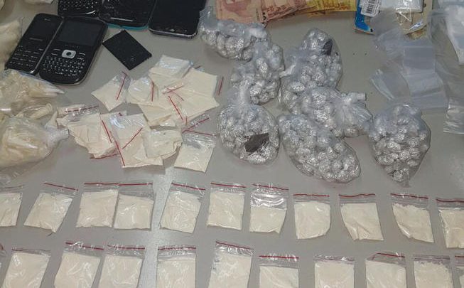 Na tarde de ontem, por volta das 14h, PMs (Policiais Militares) receberam denúncias anônimas de que um casal traficava drogas no Jardim Represa em Santo André. Viaturas foram encaminhadas ao endereço informado, uma viela entre a rua Fonte e passagem Curitiba. No local, os militares encontraram Kelvin, apontado como o gerente do tráfico. Na revista pessoal, os policiais localizaram com ele um estojo escolar com 50 trouxinhas de maconha, 74 pedras de crack e 17 pinos de cocaína, além, de R$ 46. O traficante estava acompanhado da namorada Mayara que carregava um celular furtado. Indagados sobre a posse dos entorpecentes, Kelvin assumiu ser o responsável pela distribuição e coordenação da venda das drogas naquela ‘biqueira’. O traficante, ainda levou os policiais a um imóvel nas proximidades que seria de sua propriedade, lá foram localizados mais 1.190 trouxinhas de maconha, 788 pedras de crack e 335 pinos de cocaína, totalizando 4 quilos de substâncias ilícitas. Casa
