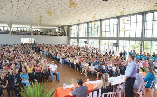 “Educação – Um Novo Olhar”, este foi o tema do encontro que reuniu cerca de mil professores e gestores da rede municipal de ensino, na manhã de terça-feira, no Ribeirão Pires Futebol Clube.marcoO evento foi o marco inicial para o retorno das aulas no município, com intuito de valorizar os profissionais da rede e promover a integração com a nova gestão da cidade. “Esta reunião é um gesto de aproximação e reafirmação de nosso compromisso com esses profissionais que, com muita dedicação e amor, transformam a vida de centenas de crianças e jovens de Ribeirão Pires”, afirmou o prefeito Adler Teixeira – Kiko. “Nós sabemos das lutas que estes servidores travam diariamente por melhores condições estruturais, por reconhecimento e valorização. Estamos trabalhando para resgatar a autoestima de nossos moradores e do funcionalismo de nossa cidade, trilhando o caminho da verdade e da mudança”, continuou. A professora Silene Silva Cavalcante Borges foi escolhida para receber homenagem em nome de todos os professores.