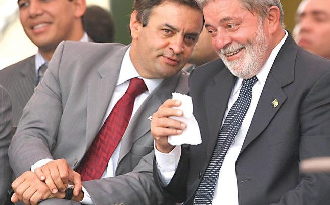 Em uma eventual disputa entre Lula e Aécio Neves (PSDB), o petista aparece com 22,6% contra 12,9% do tucano. Marina Silva com 12,6% segue logo atrás, Jair Bolsonaro tem 12,0%, Joaquim Barbosa 11,7%, Ciro Gomes 4,9%, Michel Temer 3,8% e Ronaldo Caiado 2,0%. Não votaria em nenhum deles soma 13,1% e indecisos 4,5%.
