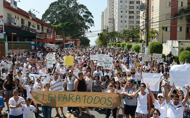 Moradores dos condomínios localizados na Avenida Dom Jaime de Barros Câmara, no bairro Planalto e do entorno, fizeram uma manifestação contra a decisão do Tribunal de Justiça, que suspendeu a liminar de reintegração de posse do terreno ocupado pelo MTST, em São Bernardo. A decisão possibilita a manutenção do acampamento montado há quase duas semanas que pertence à MZM Incorporadora. Mais de 2 mil pessoas participaram da manifestação, segundo os organizadores.Batizado de Movimento Contra a Invasão (MCI), o protesto conta com o apoio dos quase 10 mil moradores de 10 condomínios localizados na via. “Com a decisão equivocada da Justiça, entendemos que tínhamos de mostrar a nossa contrariedade. Ficamos muito felizes com a adesão dos moradores. Todos vieram de branco, em uma clara demonstração de paz”, afirmou Marcelo Mendes Vicente, líder do movimento e síndico de um dos condomínios. Os moradores vão entrar com uma representação jurídica como parte interessada no processo. “Não deixaremos a MZM sozinha”.Para Vicente, o Tribunal de Justiça acabou criando uma situação insustentável, pois os moradores se sentem inseguros, presos dentro de seus apartamentos, em virtude do uso de drogas e sexo explícito no muro que separa os condomínios do terreno ocupado. “A Polícia Militar poderia ter evitado todo esse transtorno no início da ocupação, pois tinha pouca gente. Enquanto encontramos um juiz que cumpre a lei em São Bernardo, não encontramos o mesmo respaldo no Tribunal de Justiça”, complementou.O metalúrgico Adailton, de 45 anos, morador há 9 anos em um dos condomínios, aderiu ao protesto pelo direito de ir e vir. “As nossas crianças estão presas em casa, com medo de descer no condomínio. A gente trabalha tanto, luta tanto para ter um imóvel, para depois se sentir acuado dentro de casa? Você acha isso justo? Cada centavo que é pago por este apartamento, que foi financiado, é ganho com muito trabalho. O movimento por moradia é legítimo, mas nossa cidade possui uma política habitacional que quer beneficiar quem mora na cidade. Há uma fila de espera que deve ser respeitada”, afirmou.A dona de casa Ivone, de 37 anos, mãe de dois filhos, mora há 10 anos no local. O motivo de sua adesão é a insegurança provocada pela invasão. “Vim do interior e comecei minha vida do zero. Trabalhei muito para comprar o meu imóvel. Meu marido está incluído nos 14 milhões de desempregados. Tenho feito muitos bicos para honrar o pagamento das prestações. Sabemos que esse movimento não está preocupado em lutar por moradias, mas para provocar a baderna em nossa cidade”, finalizou.