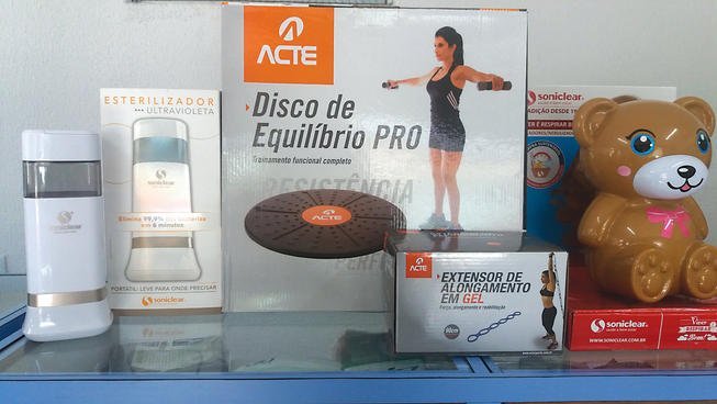 O Extensor de alongamento da Acte de 90cm é indicado para força, alongamento, reabilitação e treinamento funcional, com seis pegadas que elevam o grau de dificuldade do exercício, por R$ 99. Outro produto é o Disco de Equilíbrio Rígido Acte que auxilia no treinamento funcional, melhora o equilíbrio, a coordenação motora, e é usado para reabilitação muscular e fortalecimento dos membros superior e inferior, por R$ 99.