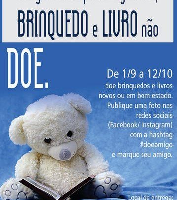 Até 12 de outubro, os interessados poderão entregar brinquedos e livros novos ou em bom estado, no Park Shopping São Caetano – Portaria A. E para incentivar outras pessoas a fazerem o mesmo, basta publicar uma foto nas redes sociais com a #doeamigo e convidar alguém a participar também.