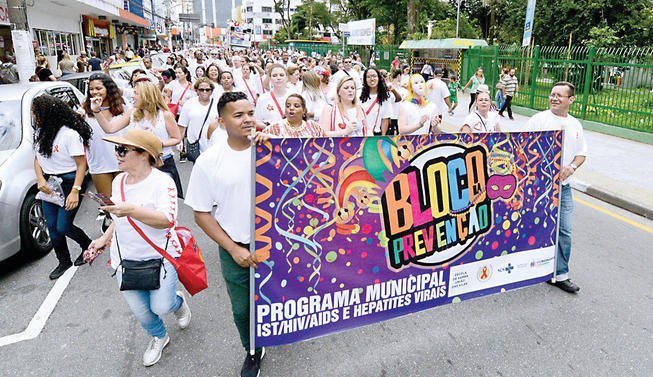 O grupo caracterizado, e devidamente identificado, se concentrou por volta das 9h no entorno da Praça Lauro Gomes, no centro da cidade, e seguiu pela rua Marechal Deodoro distribuindo mais de 1.000 preservativos, materiais informativos e entoando marchinhas de incentivo à prevenção e à realização de testes rápidos. A ação, organizada pelo Programa DST/Aids/Hepatites da Secretaria da Saúde, foi acompanhada por carro de som.