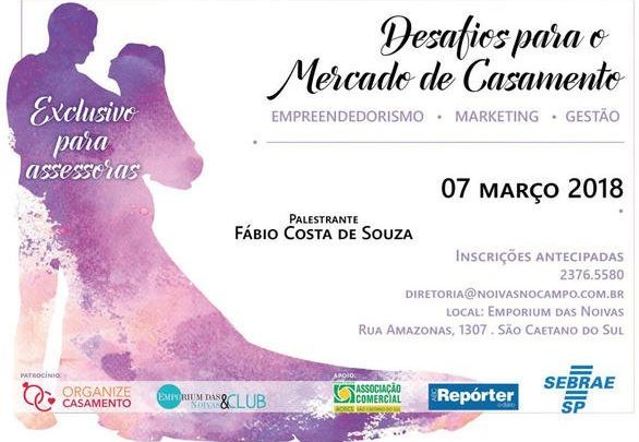 O evento gratuito e exclusivo para assessoras de casamento vai acontecer amanhã, às 9h, porém é necessária inscrição prévia pelo telefone 2376-5580. De acordo com Alessandro Leone, diretor do Empórium das Noivas, “a palestra com Fábio Costa de Souza, do Sebrae, vai abordar o mercado, o empreendedorismo, o marketing e a gestão”.
