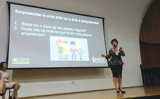 A palestra foi promovida entre os alunos de empreendedorismo, onde participaram a Drª. Rosi Molitor, Evelin Lopes, Karina Zanette e a arquiteta Elda Martinez, que falaram para cerca de 250 alunos dos cursos técnicos da escola.