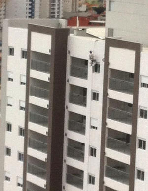 A precariedade do equipamento pode levar à morte os pintores, isso porque eles não usavam qualquer outro sistema de segurança. No detalhe, todos os acessórios para o serviço estavam pendurados junto ao corpo do trabalhador. Qualquer umas destas ferramentas pode se soltar e atingir fatalmente alguma pessoa no solo.