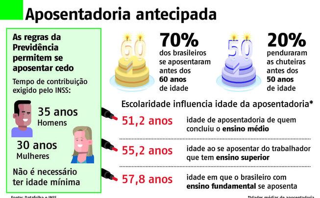 Dados do INSS (Instituto Nacional do Seguro Social) apontam que 70% dos brasileiros se aposentaram antes dos 60 anos. Outros 20% deixaram o mercado de trabalho formal antes de completarem 50 anos.