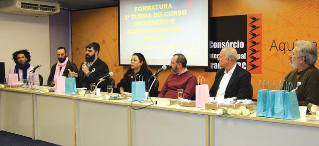 O Consórcio Intermunicipal Grande ABC concluiu, quarta-feira, a terceira edição do curso “Gênero e Masculinidades”, formada por 21 homens que atuam no serviço público municipal da região. A cerimônia de formatura ocorreu na sede da entidade regional. Organizado pelo Grupo de Trabalho Gênero e pelo Grupo Temático Gênero e Masculinidades do Consórcio, o curso contou com apoio da Defensoria Pública do Estado de São Paulo. Ao longo de 20 encontros semanais, iniciados em 25 de abril, a formação contou com palestras, dinâmicas em grupo e troca de experiências entre os participantes com o objetivo de disseminar uma cultura contrária à violência doméstica. MEDIADOR