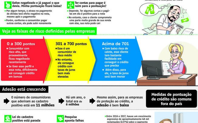 O cadastro leva em conta dados como idade do consumidor, sexo, local onde mora, renda e pontualidade nos pagamentos. A nota, score, pode ser melhorada pelo cliente a qualquer momento, com algumas simples atitudes. Manter os dados atualizados nos órgãos de proteção ao crédito ajuda a elevar a nota.