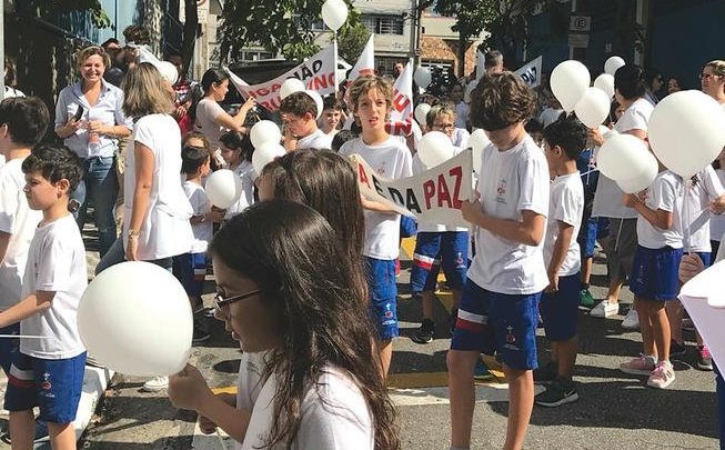 Com foco em sensibilizar crianças, pais, responsáveis, educadores e comunidade local para uma cultura de paz, alunos do Externato Santo Antonio promoveram, em São Caetano, a “Caminhada pela Paz”.
