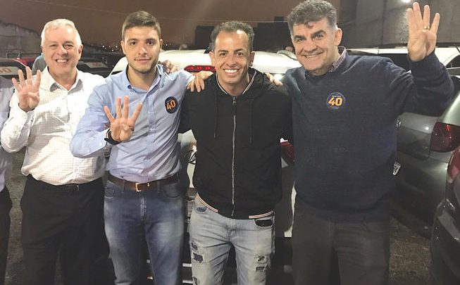 em São Caetano, adesivaço em favor da candidatura à reeleição de seu correligionário, o governador Márcio França.