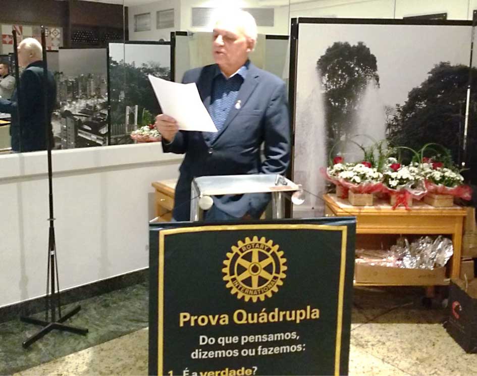 O Companheiro Silvio Daidone, esposo da Maria Teresa, fazendo uso da palavra, destacou a dedicação, os trabalhos e a importância dela nas diversas atividades do clube, durante muitos anos (mesmo antes de se tornar rotariana), em especial por ser filha do fundador do clube, Oswaldo Falchero.