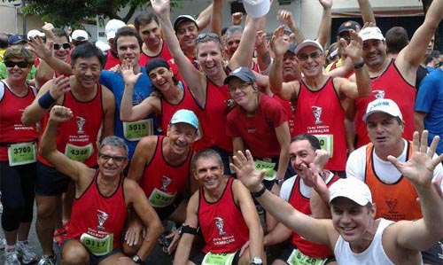 Quando penso em uma prova gostosa de correr vem a lembrança da minha participação na Tribuna de Santos . Uma prova que a maioria das assessorias fazem questão de participar . Os corredores do Clube Atlético Aramaçan de Santo André (nesta foto o grupo está na largada da prova ) , sempre participam com grande número de associados .