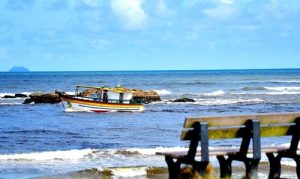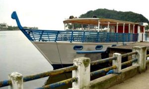 Em uma praia de água doce o barco realiza uma parada de uma hora.