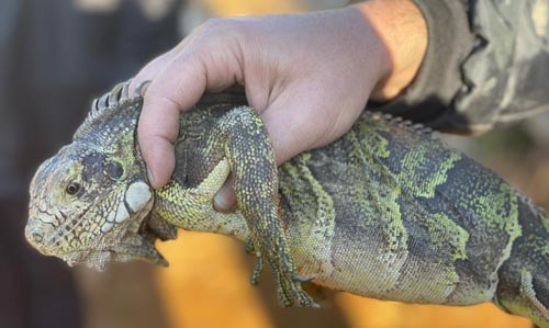 Em Ouro Fino, foi a vez de um munícipe realizar um chamado, desta vez para verificação de um outro réptil. Contudo uma iguana encontrada dentro de uma residência e resgatada pela Equipe de Proteção Animal. Após cuidados veterinários, o animal sera solto em local apropriado.