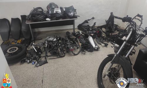 Policiais Militares durante o patrulhamento de Ações Especiais de Polícia recebeu informações via COPOM sobre um desmonte de motocicletas.