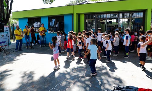 “Ficamos muito felizes ao receber o convite para participar desse projeto. Foi uma ótima oportunidade de apresentar instrumentos musicais às crianças. Ontem mesmo, em reunião pedagógica aqui na escola, discutimos a importância da música para a formação integral do aluno”, disse a professora Bárbara Barbosa Dall´Acqua, diretora da EMEI (Escola Municipal de Educação Infantil) Romeu Fiorelli, no Bairro Prosperidade, onde a banda da Estação Cultura tocou para as turmas G4 e G5 (4 e 5 anos).