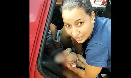 A guarda, então, foi até o veículo estacionado e percebeu uma senhora já deitada no banco traseiro, em posição de parto, e com o bebê em posição de coroação (com a cabeça aparecendo).
