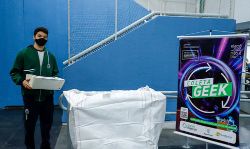 Cada escola participante da gincana recebeu uma sacola coletora fornecida pela empresa de Logística Reversa Green Eletron, que fará a separação e encaminhamento de materiais recicláveis como plástico, vidro e metais de volta à cadeia produtiva. Veja o que pode ser doado acessando ebook da Agenda Geek no link https://agendageek.org/wp-content/uploads/2022/06/CARTILHA-A4-AGENDA-GEEK-ebook.pdf)
