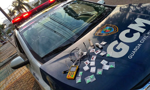 Por fim, na tarde de domingo (24), a GCM encontrou uma mochila com substâncias aparentando ser cocaína, ecstasy, maconha, haxixe, lança-perfume e LSD,além de encontrar uma máquina para receber pagamentos de crédito e débito na bolsa. O material foi conduzido à Delegacia Sede para providências da Polícia Judiciária.