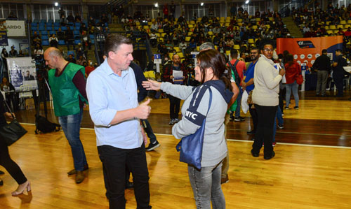 Prefeito Orlando Morando marca presença no evento realizado no Ginásio Poliesportivo, que disponibilizou mais de 2.500 empregos