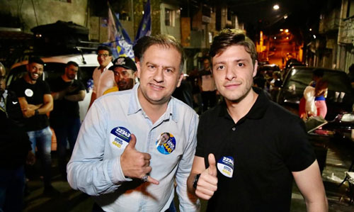 O candidato a deputado federal Junior Orosco (União) e o candidato a deputado estadual Thiago Auricchio (PL) participaram de agenda em conjunto na última quinta, 8, no bairro Canhema em Diadema.