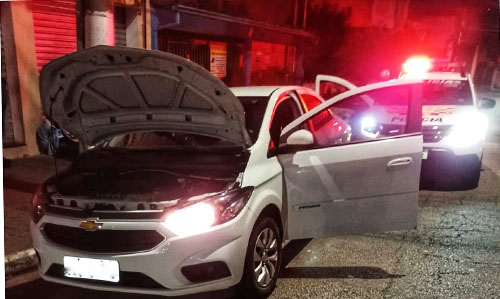Os PMs, que realizavam patrulhamento preventivo no bairro, também receberam informações do CGE, que um veículo Fiat Palio (suspeito de cometer furtos de outros carros no município) estaria transitando na cidade juntamente com um veículo Chevrolet Prisma.