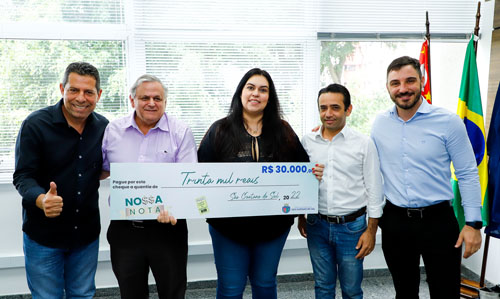 A Prefeitura de São Caetano do Sul entregou a última premiação de 2022 do Programa Nossa Nota a contribuintes sorteados que exigiram nota fiscal de prestação de serviços na cidade. O evento desta quinta-feira (10/11) foi realizado no Espaço Nelly Pellegrino e contou com as presenças do prefeito em exercício, Carlos Humberto Seraphim, de secretários municipais e vereadores, além de premiados. Foram concedidos um prêmio de R$ 30 mil e dez prêmios de R$3 mil, totalizando R$ 60 mil.