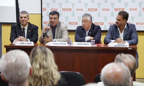 Cervone foi recebido pelo diretor do Ciesp de São Bernardo do Campo, Mauro Miaguti. “Diante disso tudo, saímos com uma preocupação aqui na nossa região: como serão os próximos 10 anos? O que nós precisamos fazer? É um grande desafio. Estamos fazendo uma ação regionalizada para que possamos trabalhar em conjunto e pensar juntos em soluções”, afirmou Miaguti após a palestra.
