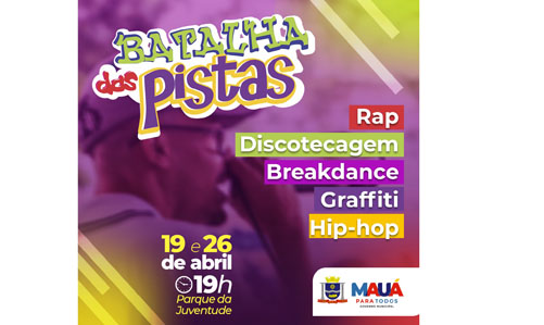 Cultura e arte são importantes componentes na formação de uma sociedade. A Prefeitura de Mauá apoia os movimentos culturais e busca difundir os melhores eventos abertos à população. Nas próximas quartas-feiras, 19 e 26 abril, ocorrem novas edições do evento ‘Batalha das Pistas’. Os encontros serão realizados no Parque da Juventude, com entrada gratuita.