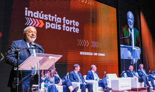 Em sua fala, o presidente Lula defendeu que uma indústria forte depende de “trabalhadores fortes, ganhando salário justo e podendo ser consumidor daquilo que produz”.
