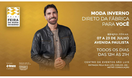 A FEIMI acontece de 7 a 23 de julho no Centro de Eventos São Luís, em São Paulo. Se os preços de fábrica já foram atraentes na primeira edição realizada em maio, agora eles estarão ainda mais convidativos. São 90 fabricantes oferecendo o melhor da moda inverno e apresentando as tendências dos vestuários masculino e feminino em malha, linha, lã, tricô e couro, além de acessórios. Nesta segunda edição, são esperadas 45 mil pessoas. Os ingressos-cortesia devem ser solicitados nos meios digitais do evento. Nas bilheterias custam apenas R$ 10,00 e beneficiam o Grupo de Apoio ao Adolescente e à Criança com Câncer (GRAACC).