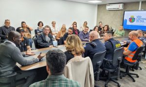 O encontro contou com as presenças do secretário de Segurança, Lourival dos Santos Silva, do comandante da GCM, Douglas Bispo da Silva, da delegada de Polícia Titular do 2º DP, respondendo pela Delegacia Sede do Município, Valderês Lopes, do comandante da 3ª Companhia da Polícia Militar, capitão PM Sérgio Vinícius Melo Vasques, do coordenador do CGE, César Wendel Delpim, do coordenador de Proteção e Defesa Civil, Juscelino Roque Brilhante, e do subcomandante, Rogério Gonçalves Dourado.