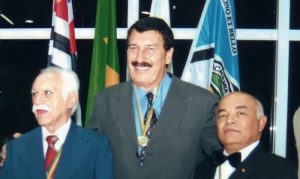 Posse de Milton Bigucci na Academia de Letras da Grande SP em 2003. Ao lado dos acadêmicos Rinaldo Gissoni e João Bosco