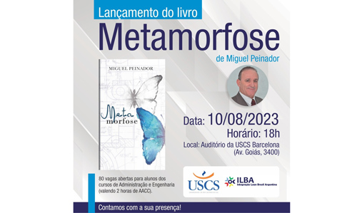 O autor Miguel Peinador lançará sua mais recente obra intitulada “Metamorfose”, na quinta-feira (10) em São Caetano. O livro promete transportar os leitores para uma viagem fascinante pelas complexidades da liderança e gestão de negócios nas décadas de 1970, 1980 e até 1995, oferecendo um panorama vívido e esclarecedor das transformações que moldaram o mundo corporativo.