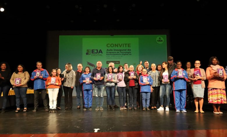 O uso da tecnologia é cada dia mais presente, desde marcar uma consulta ou receber o agendamento pelo celular ou conferir a situação bancária ou de um benefício. Porém, pode ser tornar um grande empecilho para quem ainda esteja no processo de alfabetização, independentemente da idade. Por isso, a Prefeitura de Mauá lançou a EJA (Educação de Jovens e Adultos) Digital, ação que prevê a utilização da tecnologia para ajudar na alfabetização e na emancipação dos alunos. Uma aula inaugural demonstrativa foi realizada na noite desta terça-feira (15/08), no Teatro Municipal, que reuniu de mais de 300 pessoas.