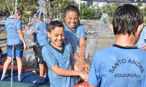 Artur Vicente, de 9 anos, estuda na Emeief (Escola Municipal de Educação Infantil e Ensino Fundamental) Professor Benedito Gomes de Araujo. O aluno, assim como seus colegas de classe, se divertiu e aproveitou para se refrescar em uma das novas atrações: o Espaço de Fontes Interativas, que traz a água como principal entretenimento. “Aqui ficou ainda mais legal”, elogiou o estudante, praticamente “ensopado”.