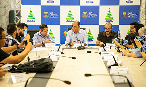 “Este será o maior Natal da história de São Caetano do Sul. Consolidamos esse processo, uma tendência quase que irreversível, que é o poder público abraçar o Natal e organizar atividades em uma ampla programação, para toda a família celebrar”, ressaltou Auricchio. Os secretários municipais de Governo, Jefferson Cirne da Costa, de Cultura, Erike Busoni, e de Serviços Urbanos, Luis Galarraga, também participaram da coletiva.