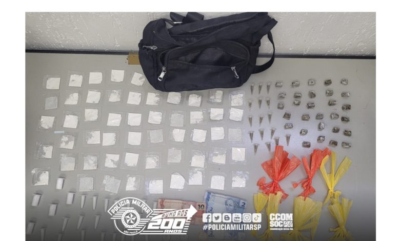 No total, foram apreendidas 44 pedras de crack, 45 porções de maconha, 80 porções de cocaína, além de R$15,75 em dinheiro.
