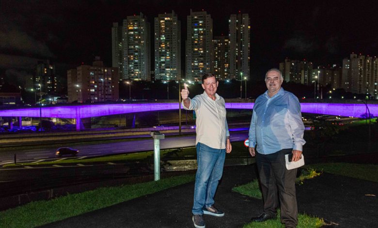 Em iniciativa para visibilidade a importantes ações na cidade, a Prefeitura de São Bernardo lançou nesta sexta-feira (1º/03) uma novidade: a iluminação especial no Viaduto Tereza Delta, neste mês, alusiva à campanha do Março Lilás, com a proposta de chamar atenção para a conscientização e combate ao câncer do colo de útero. A medida teve pontapé inicial do prefeito Orlando Morando, que registrou esse anúncio numa live, ao lado do secretário de Obras e Planejamento Estratégico, Mauro Valeri.