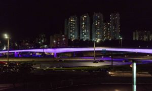 Viaduto Tereza Delta recebe iluminação alusiva ao Março Lilás