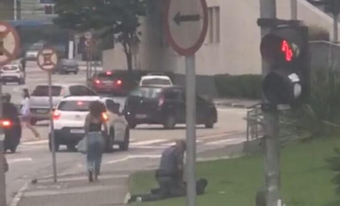 No vídeo, é possível observar claramente um indivíduo sendo imobilizado pelas autoridades. De acordo com informações preliminares, ele e um comparsa estavam tentando realizar o roubo da moto, uma prática conhecida como “mixar”, quando foram surpreendidos pela chegada repentina de uma viatura policial.