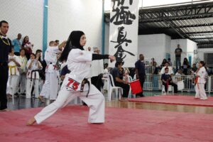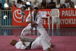 Os atletas ribeirão-pirenses Gustavo Maia e Jessica Simões conquistaram os primeiros lugares na categoria máxima da modalidade, Kumite Absoluto masculino e feminino, no 30º Campeonato Paulista de Karatê Shinkyokushin. O evento, realizado neste domingo (16), no Ginásio de Esportes Ozíris Grecco, localizado no Complexo Ayrton Senna, contou com a participação de 182 competidores das cidades de São Bernardo, Paulínia, Piedade, Mooca (São Paulo), Vila Joaniza (São Paulo), Sorocaba e Biritiba Mirim.