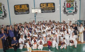 “O esporte e as artes marciais têm o poder da transformação, do respeito à idade, à cidadania, à graduação de cada atleta; à família. Então, nos orgulha recepcionar, entre tantos eventos esportivos, mais um da modalidade. Ribeirão Pires está movimentada com esportes no ar, na terra, no tatame e, em breve, teremos um grande ginásio para recepcionar o Sulamericano”, comentou o prefeito Guto Volpi, que recebeu das mãos do Shihan Denivaldo Carvalho a faixa Preta Benemérito em homenagem.