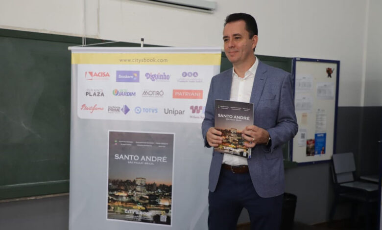 O auditório da Fundação Santo André recebeu, nesta quinta-feira (20), o lançamento da terceira edição da revista City’s Book Santo André. A publicação, com 98 páginas e em duas línguas (português e inglês), atuará como um cartão de visitas do município, trazendo informações sobre diversos aspectos da cidade como dados sociais, sobre qualidade de vida e sobretudo economia. O evento de lançamento contou com a presença do Prefeito Paulo Serra, do secretário de Desenvolvimento e Geração de Emprego, Evandro Banzato e o secretário de Inovação e Administração, Pedro Seno.