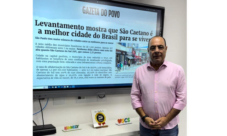 “Eu recebo na prefeitura aqui, o clipping – compilado de informações – dos grandes jornais brasileiros, e hoje recebemos do Gazeta do Povo, maior veículo de comunicação do Paraná, e talvez um dos maiores do Brasil, pesquisa feita por eles com bancos de dados públicos, e São Caetano foi eleita, dentre mais de cinco mil municípios, a melhor cidade do Brasil para se viver”, celebrou o chefe do Executivo.
