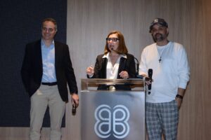 Branco Gualberto, diretor artístico do Grupo Tacatinta, Beatriz Alves, superintendente do ParkShopping São Caetano e Felix Diez diretor regional SP da Multiplan